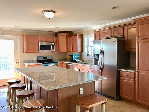 LARGE FAMILY? FRIENDS THAT LIKE TO VISIT? This ultimate beach home has 2 living spaces and 2 master bedrooms! The separate first floor living arrangement allows private space for guests, extended family or grown children. There are 3 BR up and 2 BR down with 2 baths on each floor. This is a great investment property or an opportunity for a group purchase. The house has every comfort and convenience with 2 zone heating and A/C, granite counter tops and crown moldings. Two large rear 20' x 12' decks (AZEK decking) and a front balcony with sunset views of the bay. The location is great for access to fishing pier, boat launch and tennis and basketball courts. BRING YOUR KAYAKS, SURF BOARDS AND BICYCLES. (Fully shelved out garage with access door to crawlspace) TO YOUR NEW VACATION GETAWAY