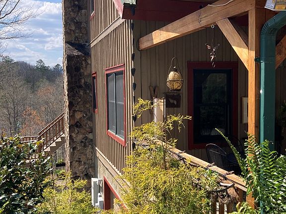 This well-maintained and beautifully renovated 3 Bedroom, 3 Bath home has new hardwood flooring, open living area with vaulted ceilings and a floor to ceiling stone wood burning fireplace. The large, covered deck faces provides year-round sunset mountain views. On the main level, there is an open kitchen with a striking Curly Maple bar made by a local artisan, a cozy breakfast nook, pantry/laundry room, dining room and living room. The Master Suite is on the main level and features a large bathroom with a walk-in closet, tile shower and garden tub. French Doors lead from the Master Suite to the deck. Upstairs has a loft area, 2 bedrooms, 1 bathroom and an office that overlooks the living room. Downstairs is plenty of additional living space, a bathroom and a spacious studio that can be converted to a guest suite or a game room. Doors lead to a large patio where you can relax and enjoy the view. Lots of outside storage on either side of the garage. The exterior features a fire pit, garden and lovely landscaping with fruit trees and berry bushes. Located 15 minutes from Bryson City and Nantahala Outdoor Center, this home would make an ideal full-time residence or an excellent rental!