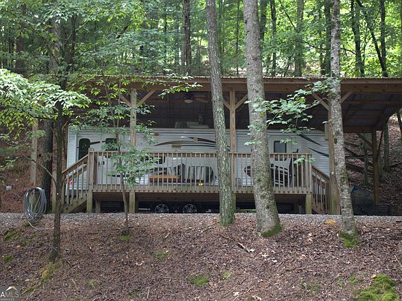 Enjoy the great outdoors with a private camping lot with 27ft RV, deck, roofover and firepit pit. Fun on the River, are just part of the Coosawattee River Resort amenities - fishing, recreational center with indoor pool, game room and exercise equipment. Multiple outdoor pools, tennis courts in this gated community. Located less than 15 minutes from downtown Ellijay.