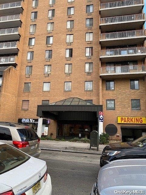 Location, location, location. It's in the heart of Downtown Flushing. The condo is 850 SQFT, and private terrace is 1000 SQFT. Laundry within unit. 24-hour doorman. Across the street from the library, 2 blocks to LIRR and the subway. Restaurants, stores, banks, etc all within walking distance.