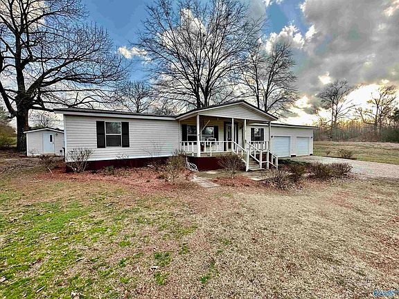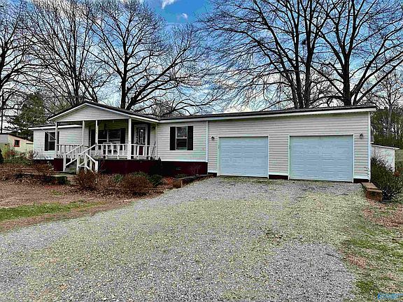 This 3 bedroom 2 bath mobile home (1997) sits on .3 of an acre in quiet subdivision in Hackleburg. This home features a Master on-suite with a separate shower and tub. It also features a living room, dining room, sunroom, den/family room, 2 car garage, 2 out buildings, covered front porch and covered back porch.