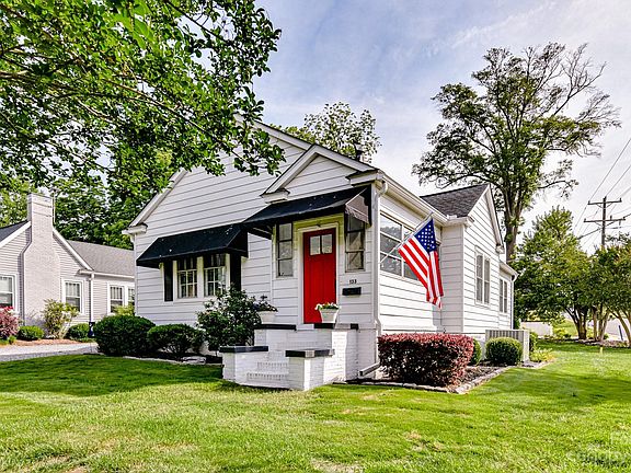Adorable & unique bungalow home located on a corner lot within the Fort Mill Historic Boundary! This is the 3rd owner in the long history of this cute as a button home. Many of the original features remain which makes it such a special property...the original glass doorknobs, hardwoods, doorway trim, windows, metal siding, wood fireplace & more. All are in excellent condition-you'll have to see it to believe it! A long deep porch welcomes you as you enter the home & has "rollout" style Florida windows. The large primary bedroom does not have permanent or fixed clothes storage but offers space for a wardrobe or closet. Lovely & immaculate yard offers lots of space for play & entertaining. Driveway & parking garage/shed is shared w/the neighbor. Home is within walking distance to downtown Fort Mill, restaurants & parks! Fresh paint throughout, new drywall in kitchen & bath. Home is subject to Fort Mill Historic District Design Guidelines/age of home is approximate per seller.