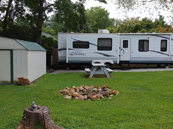 Own your own campsite. Camper is Very Clean, move in ready, and sleeps 8+. Garage with roll up door, shed, and fire pit. Two large flat lots in Glen 3 well maintained. Must have realtor to get into Indian Acres. Community has an extra large community pool and kiddie pool, Boat ramp, playground, tennis court, Basketball, Baseball. Soccer areas as well as community movie night by the pool.