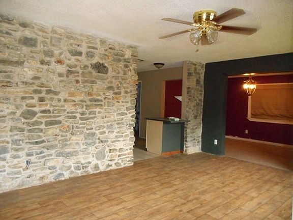Pretty rock accent wall in living room and hallway. Pedestal sink in bath, tub/shower combo. Ceiling fans and nice light fixtures. Dining room could be second living area. Fenced back yard and spacious storage building. Inside laundry area with room for the family freezer or leave your ironing board up. Interior paint needed as kids picked room colors and wall dcor.