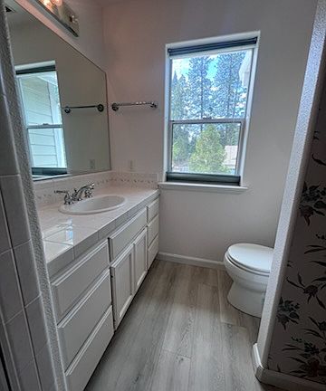 Welcome to the Tree House! Located in the 7-Hills Business District, this gorgeous unit is waiting just for you! Situated on the second story of a private office building with a gorgeous partially covered back deck looking out into the pines., this two-bedroom, two bath, plus office and laundry room is a perfect getaway from the hustle and bustle of downtown. There is a very spacious kitchen with breakfast bar looking out into the dining area and living room with great natural lighting throughout, built-in gas fireplace, spacious office with French doors, and two very large bedrooms. The master bath has a sunken tub with a unique steam shower. There is room to roam in this gorgeous apartment. No pets, no smoking.