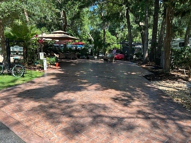 RV Lot #144 is BEAUTIFULLY landscaped with a stamped concrete pad that can accommodate a 45' coach with a tow vehicle. The mature landscaping creates a very intimate setting and still room to entertain. Storage shed and all furniture will convey with purchase. Irrigation and landscape lighting makes this the perfect lot to enjoy. Excellent rental history available upon request. Hilton Head Island Motorcoach Resort is a luxury RV resort consisting of 50 acres of woodland setting accented with lush landscaping settled in the heart of Hilton Head Island and is a short bike ride to Coligny Beach, restaurants and shopping.