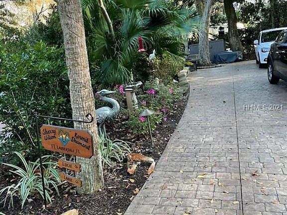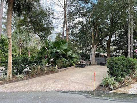 LOT 186 in Hilton Head Island Motorcoach Resort. This beautifully landscaped lot with stamped concrete on the corner provides plenty of shade and privacy. Large storage shed to convey. Amenities include a resort style pool and hot tub, tennis and pickleball courts, playground, shuffleboard, beautiful clubhouse with fitness center and laundry facilities. HOA fees cover water, sewer and cable/internet.