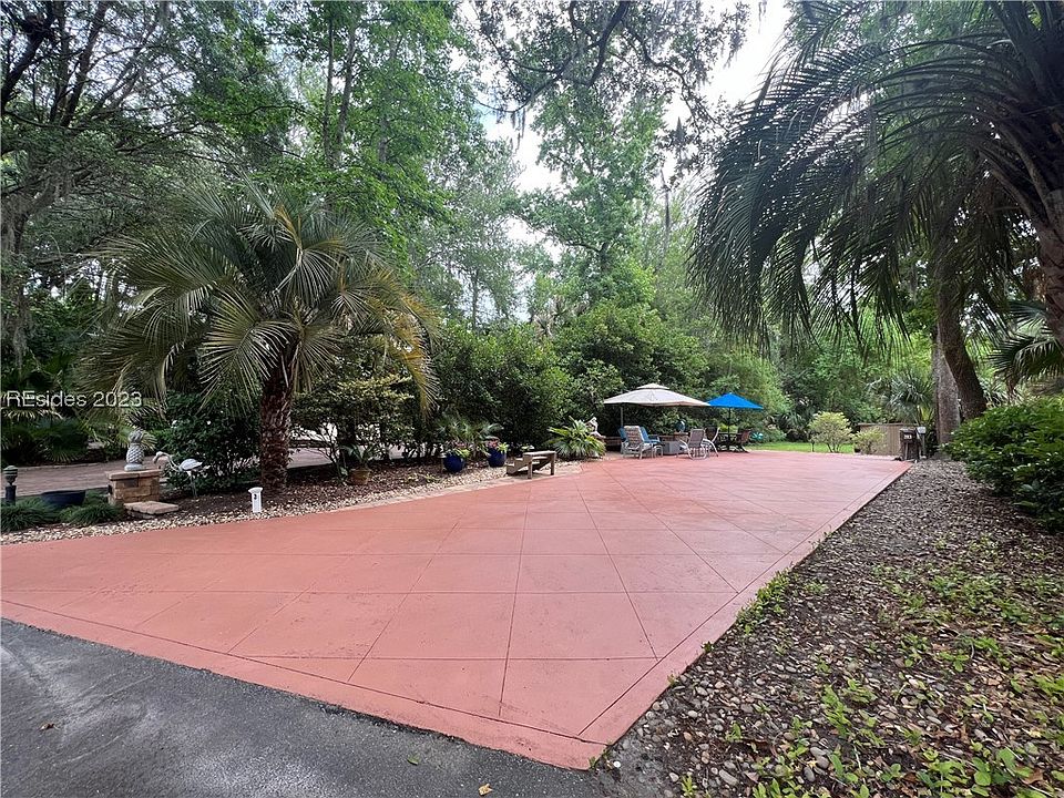 RV Lot #283 is BEAUTIFULLY landscaped with a stamped concrete pad with a paver wall that can accommodate a 45' coach with two vehicles. This lot is equipped with irrigation, landscape lighting and is located in phase V in the resort and backs up to common area for you to enjoy. Storage shed, sofa, fire pit and large umbrella will convey with purchase. Hilton Head Island Motorcoach Resort is a luxury RV resort consisting of 50 acres of woodland setting accented with lush landscaping settled in the heart of Hilton Head Island and is a short bike ride to Coligny Beach, restaurants and shopping.