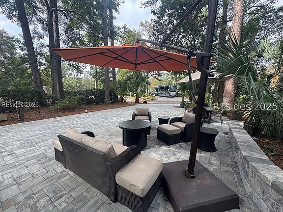 Perimeter LUXURY RV lot #323 has a new paver pad and can accomodate a 45' coach and 2 vehicles. This LARGE PET-FRIENDLY lot comes complete with irrigation, landscape lighting, new shed, and all furniture and grill will convey with purchase. Excellent rental history available upon request. Hilton Head Island Motorcoach Resort is located in the heart of Hilton Head Island and is a luxury RV resort designed for the conveneniences and enjoyment of class A, class C, and Super C Motorcoaches only. The resort consists of 50 acres of woodland and lush landscape setting accented with live oaks dripping with Spanish Moss, palms trees, ferns and flowering shrubs. The resorts amendities include tennis courts, pickle ball courts, shuffleboard, swimming pool, hot tub, clubhouse, laundry facilities, fitness center, basketball courts, playground, dog park, Wi-Fi, cable, daily trash pickup, lawn maintenance, water & sewer. Hilton Head Island Motorcoach Resort is a short bike ride to Coligny Beach, restaurants and island shopping.