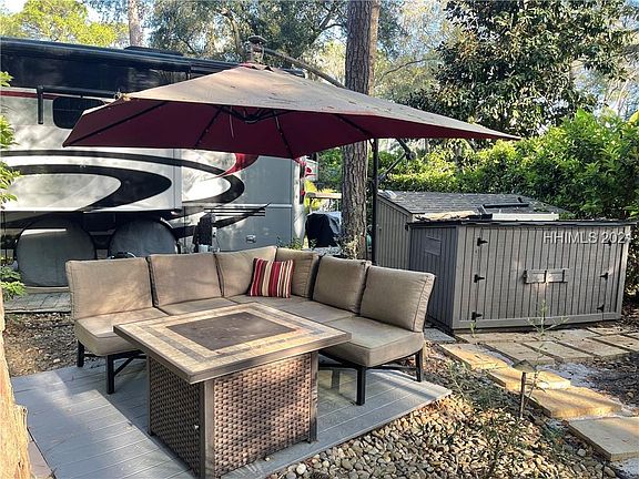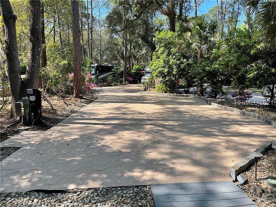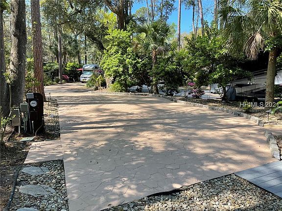 RV Lot #87 is 3104 sq ft and has a freshly stained stamped concrete pad with lots of room to entertain in a private setting. New irrigation system and outdoor lighting for those special HHI evenings. Hilton Head Island Motorcoach Resort is a luxury RV resort consisting of 50 acres of woodland setting accented with lush landscaping settled in the heart of Hilton Head Island and is a short bike ride to Coligny Beach. HHIMR amenities include tennis courts, pickle ball,shuffleboard,swimming pool,hot tub,clubhouse,laundry facilities,fitness center,basketball courts, playground,dog park,Wi-Fi,cable,daily trash pickup,lawn maintenance,water & sewer.