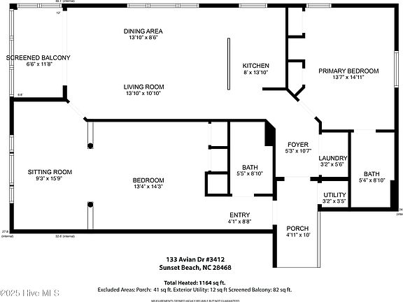 - Total interior livable area: 1,164 sqft