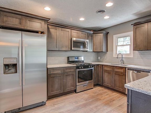 Absolutely stunning remodeled home in Central Valley School District. Completely move in ready! Beautiful open floor plan. Walk in to the large living room with exposed beams that opens to the completely updated kitchen and dining room. All new flooring, cabinetry, granite counters and whirlpool, stainless appliances. Dining room opens directly to the newly built deck. Large master bedroom with a vaulted ceiling and plenty of closet space. All new master bath equipped with a double sink vanity and tile shower/bath tub. The second and third bedrooms are both updated with new carpet, paint and large closets. Ample windows allow for plenty of natural light. Walk down into the huge, finished basement with a fireplace. Great game room with totally updated, full bathroom. Large laundry room is separated from the game room. Nice sized side yard is great for entertaining. New plumbing, electric, driveway, HVAC System and so much more. Must See. Close walk to the High School