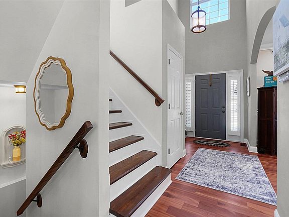Refined rustic accents add a warm, welcoming touch to this gorgeous 2-story home in desirable Fountains at Bear Creek. Located on a corner oversized lot, this updated beauty offers 4 bdrms, 3½ baths, 3-car garage, new roof, and nicely landscaped, fenced yard. A wrap-around porch and atrium-style entry invite you into the sun-washed great room and open kitchen design. Brazilian hardwood, w/b fireplace, center kitchen island, 6-burner gas stove, coffee bar, and sliding barn door will catch your eye. A formal dining room, powder room, and laundry room round out the main level. Upstairs, the primary bedroom suite features a coffered ceiling, spacious walk-in closet, and luxury bath w/double vanity. The LL provides a full bath, sleeping room w/walk-in closet, recreation area, and generous storage. New plantation shutters, ceiling fans, light fixtures, bedroom carpeting, tinted bay windows, accent walls, and gutters are among the many improvements; full list in supplements. Don’t miss out!