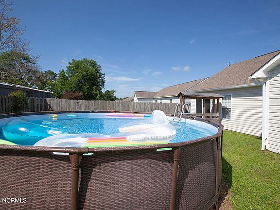 Situated in the Neighborhoods of Holly Ridge this 3 BR 2 BA single level home provides community living just down the road from Topsail Island beaches. The kitchen is set up for efficiency while cooking/preparing cuisine for entertaining in the spacious back yard. Enjoy the above ground pool in the fenced back yard. A home warranty is offer with the sale of this home. This neighborhood is in the Town of Holly Ridge so you may enjoy the amenities offered by the town. Set up your appointment today.