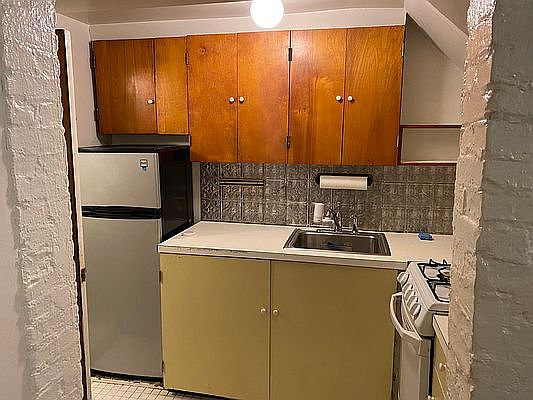 Huge studio in prime Park Slope location. More like a smallish one bed - an area for bedroom, separate kitchen, and an area for living room. Sorry, NO DOGS - But a cat is okay. Garden level and no garden. Berkeley between 6th and 7th ave. Great price. Perfect for one. Pets on approval.