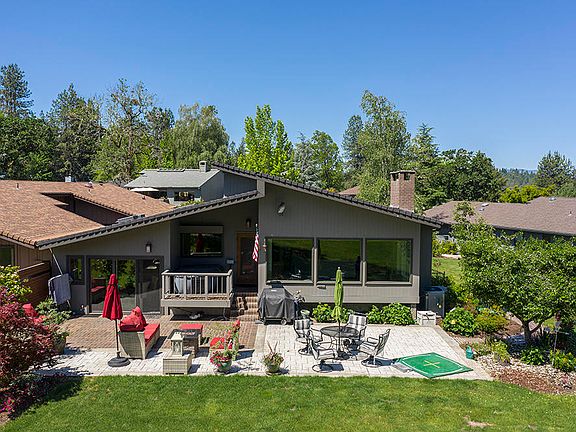 Golf course home has the WOW factor! This fabulous executive mid-century modern home features golf course frontage, soaring ceilings, terrific finishes and an open floorplan. Located in an upscale neighborhood very close to all services. The kitchen is definitely a cook's kitchen- part of the 2016 major remodel is evident here. Large eating bar, tile floors, 5 burner gas stove, farm sink and an extra coffee bar off the breakfast room. The living room is all windows to take in the outdoor living space and view. There is a fireplace and built in bar - entertaining here is easy! The master is its own retreat with large walk in closet and updated ''spa'' bathroom. There is another guest bedroom on this level. Downstairs there is a 3rd bedroom, bath with shower and the family room. There is a shop area as well as a 3 car garage with parking underground. You won't find many homes in the Rogue Valley that are right out of Architectural Digest....this is a hole in one!