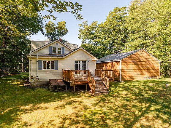 Adorable 3-bedroom home on nice 1 acre lot. This home features an updated kitchen with granite counter tops, stainless appliances and open dining area. Side to side living room, updated bath, mudroom entry with laundry and rear deck over looking private back yard. The second floor has 3 bedrooms and attractive wood floors. The major systems are in good shape with newer roof, and radon water mitigation system. Large detached 2-car garage and paved parking. Excellent value for Falmouth! Seller welcomes concessions to Buyer as part of an offer.