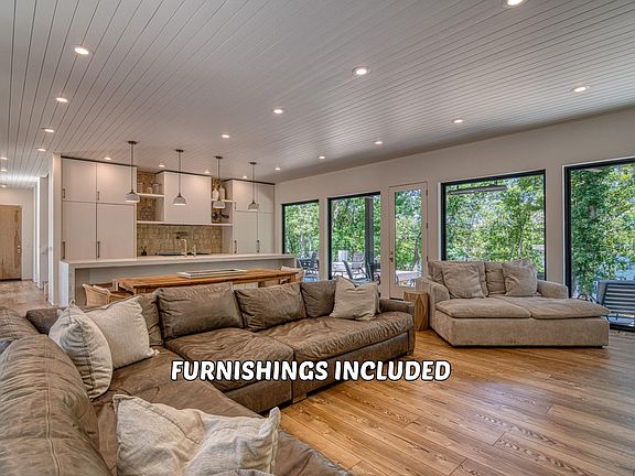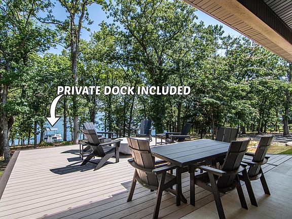 Lakefront and lake view home with private dock included on the shoreline less than 200 feet away and within sight of the home. Additionally, the home is furnished, including electronics, and ready for you to enjoy lake time. Contemporary style home built in 2022 and designed with a focus on enjoying lake life. The main level features towering ceilings and windows that capture the view of the lake and outdoors. Upstairs you'll find 4 bedrooms and 3 full baths so there's room for family and friends. Picture yourself on summer afternoons enjoying the back deck while watching the kids playing off the swim platform on the dock and then on those cooler evenings gather around the gas firepit on the deck to share memories. The private dock, included in the price, is solar powered and features a 10' x 24' boat slip, swim platform and an attached floating PWC dock. Plus, you don't find very many places on Table Rock Lake where the slope of the path from the home to the dock is as easy as you find with this property. This is a convenient location on the lake and by land it's just a short distance from shopping necessities. You don't want to pass up this amazing lakefront package deal.