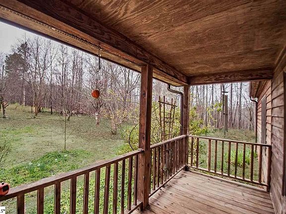 Total privacy at the very end of a private road! Almost 5 acres and a very level home site. Back of property has river frontage. Endless possibilities to add recreation area near river or add a hunt club! Very quiet, country setting with plenty of flowers and wildlife. Home is rustic but will surprise you with tasteful finishes inside. One bedroom on main floor with full bath attached. A second main floor bedroom/bonus room on main floor. Hardwoods in the living areas. Big kitchen leads out to very large multi level deck. Covered porch on back overlooks completely private back yard. Upstairs you will find a large 3rd bedroom and a huge master suite with sitting area and walk in closet. The master bath has an amazing seated walk in shower and double sinks. Come make this home your dream property!