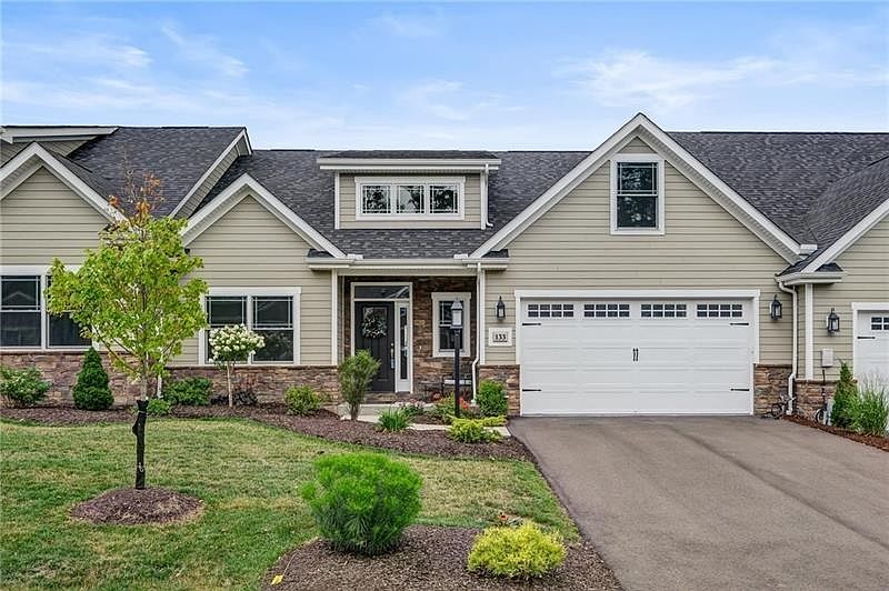 Welcome home to 133 Brookfield Estates Drive! This custom-built patio home is move-in ready and full of beauty. Featuring main level living with an open concept kitchen and great room, mudroom with built-in lockers, first-floor laundry room, and a first-floor owner's suite with dual closets! Second floor boasts a large guest suite with walk-in closet, sitting room and spacious bonus room. Take advantage of the considerable unfinished basement and create the game room of your dreams! Enjoy a low maintenance lifestyle at Brookfield Estates!