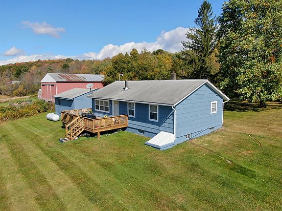Well maintained and tastefully updated three or four bedroom ranch with approximately 1,700 sf of gross living space. Located in a beautiful country setting with fantastic scenic views, the first floor features a large bright living room with Rinnai heating unit, open to tastefully updated eat-in kitchen with stainless steel appliances. Three ample size bedrooms on first floor with hardwood flooring. First floor rounded out by full bath and laundry area. Basement is absolutely beautiful - completely remodeled with family room area, huge office area - great set up for the work from home buyer, and large bedroom and full bath - credit to be offered for remaining finish work. Exterior highlighted by large private back deck featuring beautiful hillside views, two bay detached garage and 16' x 10' outbuilding - great for storage. New features include - windows, furnace, hot water heater, as well as the significant upgrades to the basement. Nice House, Great Setting! refer to the attached 3D walk thru !
