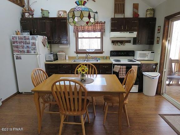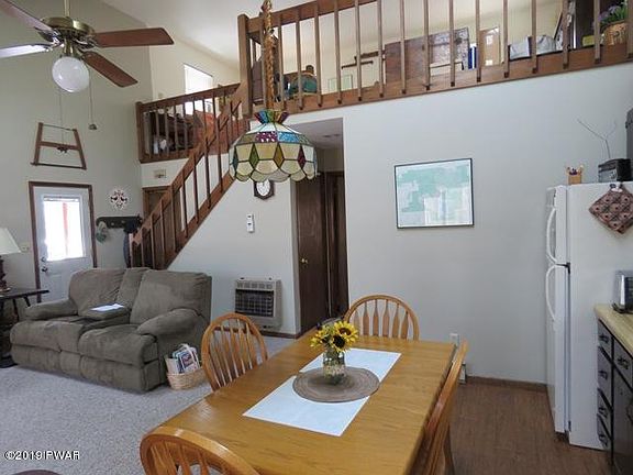 Enjoy the tranquil whisper of the forest from the screened porch or open deck of this contemporary home located at the edge of 6,000 acres of state land in the lake region of the Poconos. Hike the many trails just out your back door or visit the many near by pristine lakes. Community has out door pool and clubhouse for homeowners use. Year round or vacation home with two bedrooms, plus large loft and open floor plan with tons of natural light. Living room offers a cathedral ceiling and field stone wall with wood stove for additional heat source. The full basement has large sliding doors facing the woods and is ready to finish for family room or additional living space. Low taxes and dues. Don't miss this exceptional buy!