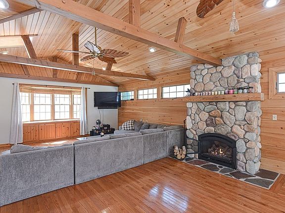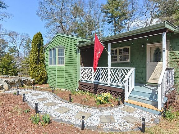 Calling all buyers looking for one level living! This sprawling ranch-style home has so much to offer, yet ready for your finishing touches! Ideal, easy-to-move-about floor plan features an eat-in kitchen, formal dining room, MASSIVE great room with vaulted ceilings, 3 bedrooms, 1 bath, 2 car garage with plenty of space for a workshop/storage, and a large basement with high ceilings that could be finished for more living space. This property borders conservation land and sits on almost 3/4 of an acre in a quiet setting with gorgeous landscaping; featuring custom stonework, evergreens, flowering trees, shrubbery, and perennials, + a partially fenced-in yard! The back of the home offers an expansive deck that extends approximately 40 feet - perfect for entertaining guests throughout the year! Many big ticket items have been updated - A newer roof, a new septic installed in 2020, and a brand new hot water heater was installed in 2023. This charming property boasts pride in ownership!