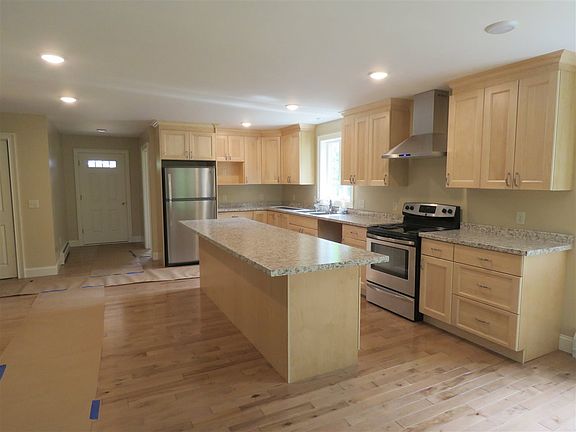 Spacious and brand new construction home in a desirable location with access to 1200 ft of sandy beach on Lake Memphremagog. Featuring 3-4 bedrooms, 2 full baths and easy one level living at its best with hardwood flooring throughout the main level & tiled baths. The main level offers 1840+sq.ft of living space with a large open kitchen/dining/living room area, master bedroom with full bath, 2 additional bedrooms, an office/den, mudroom, first floor laundry and access to the covered porch overlooking the back yard. In addition, the lower level has large bright windows and 1600+ sq.ft of finished living space; ideal for guest rooms, family room, home office, etc. Very efficient, easy to maintain, City water & sewer, custom built cabinetry and a 24'x24' two-car attached garage with direct entry. Great location on a dead-end road, yet close to town amenities, bike path, schools, hospital and more. Private beach access is just a short walk away & offers one of the nicest sandy beaches in the area with shallow water, allowing easy access for swimming & boating and a screened gazebo for family gatherings (small association shared with other home owners for $15/month). Relax on the back porch while enjoying the private wooded setting, partial lake views and abundance of wildlife.