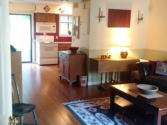 Located on a quiet cul-de-sac minutes from Dartmouth college and medical center, Dolthan Brook School and Lebanon, NH. Large bay window opens to a spacious living room leading to an eat in kitchen. Exposed beams and wainscoting add a country feel with condo convenience. New hard wood bamboo flooring throughout first level. Entryway with large closet. Recently renovated 2nd floor bathroom and updated kitchen. Large bedrooms with ample closets. Electric range, microwave, dishwasher, fridge, washer/dryer. Heated by forced hot air, propane. Exterior boasts a large shared backyard and side green area as well as a personal patio with garden for your perennials or vegetables. Amenities to include heated indoor pool with outdoor patio, fitness room, water/sewer, lawn maintenance, snow and trash removal. Dogs and cats allowed.