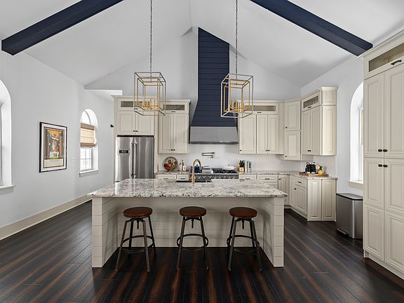 The chef's kitchen is a culinary dream, featuring updated appliances and plenty of storage for all of your cooking essentials.