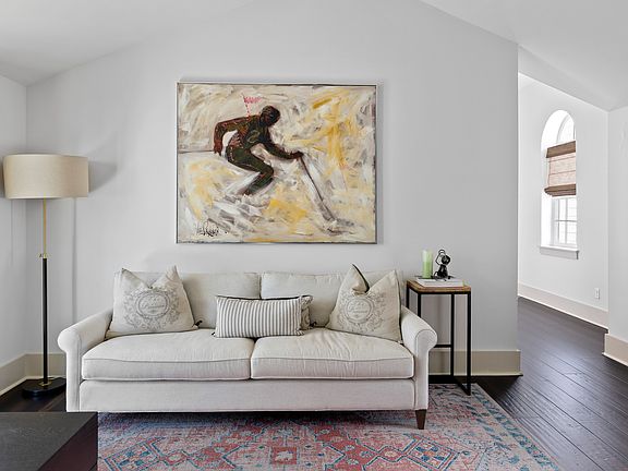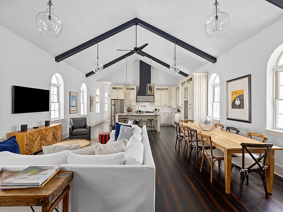 Upon stepping through the proper mudroom, you'll immediately be greeted by an abundance of natural light flooding in through custom arched windows, illuminating the large open-concept living space and 17 food valued ceilings.