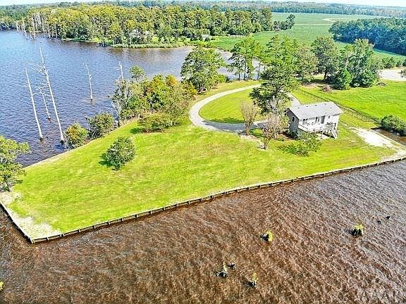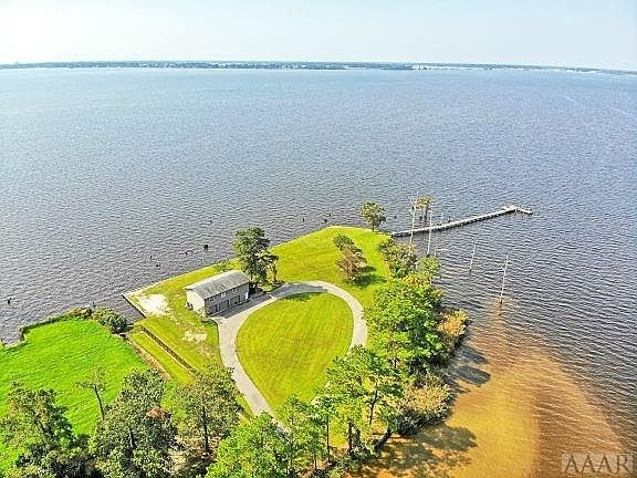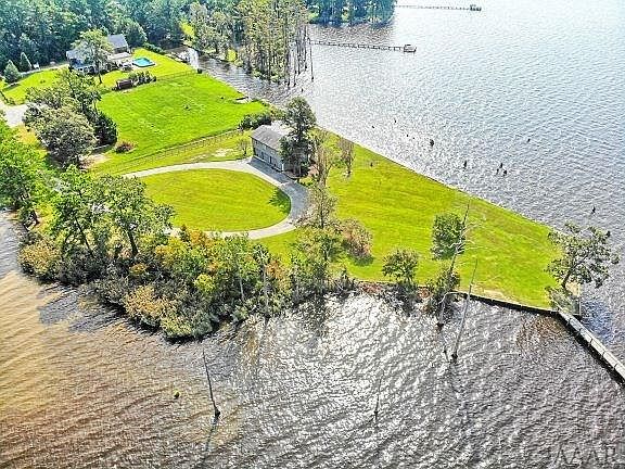 One of a kind piece of property with spectacular panoramic views of the Pasquotank river. This 1.72 acres is surrounded on 3 sides by navigable water and has a great pier to enjoy watching incredible sunrises and sunsets. This property is ready to build your next beautiful river front home. A 3 car garage also sits on the property and has a 2 bedroom 1 bath apartment with incredible views from the living room and outside deck. Septic already on property and is permitted for a 5 bedroom home.