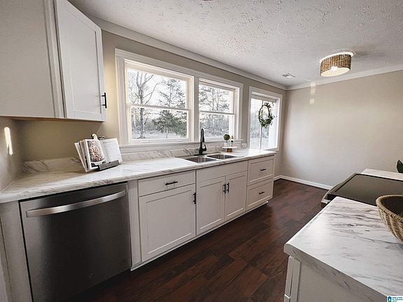 Beautiful brick home on 2 acres with so much to offer! This one-level split-bedroom home is like new. New items include roof, plumbing, HVAC, electrical, floors, cabinets, appliances, paint, porches, and lights. Gorgeous brand-new eat-in galley kitchen with lots of windows, white shaker cabinets, quartz-look countertops, stainless steel appliances, and laminate floors. Huge living room with plenty of natural light and built-ins. The primary bedroom has new flooring, a new fan, and a tile en-suite bath with a step-in shower. Formal dining could be another living area with more charming built-ins. Secondary bedrooms have plenty of storage, new paint, new fans, new closet doors, and new flooring. The shared bath has a nice tile surround, a soaker tub, a new toilet, and good size linen closet. There is also a nice big patio and plenty of room for a garden. There is also a large barn/ workshop that is great for storage