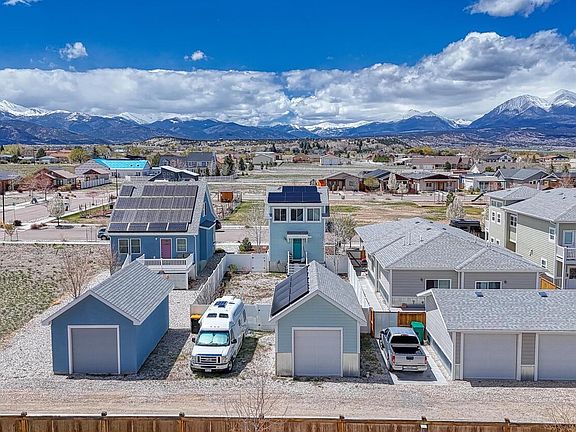 This beautiful home is 100% electric and supplemented with solar. It is located in the Crestone Mesa Subdivision near the Salida Golf Course and has beautiful and big mountain views of the Collegiate Peak Mountains from the front porch and views of Methodist Mountain area from the back deck.