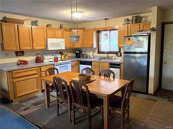 LOCATED WITHIN WALKING DISTANCE TO THE SKI SLOPES! This 3BR, 2BA corner unit w seasonal views provides you with the perfect getaway at an affordable price! 1st flr features include the eat-in kitchen w abundant cabinet & counter space, & the LR w a free stand stove, vaulted ceiling, skylight, & dual sliding doors to the deck. Upstairs includes the loft BR with distant mountain views from the skylight , a walk-in closet, & a full BA. The LL includes 2 BRs, & another full BA. Other amenities include a newer roof & portable AC units. Prime location to all Pocono attractions including Aquatopia, Camelback Ski Resort, Big Pocono State Park, The Crossings, Kalahari, Mt. Airy Casino, & so much more! All located less than 2 hours from NYC & Philadelphia making this home your perfect retreat!