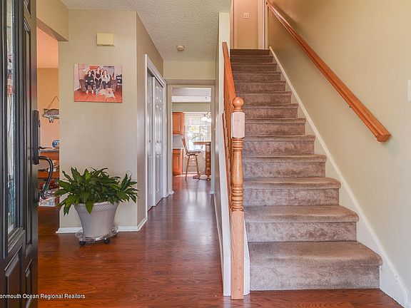 Updated spacious colonial at the end of a dead end street. Extra Large irregular lot. Eat in kitchen has carrion counter tops, newer appliances, built in breakfast counter, which opens to a family room with sliders to backyard. Formal dining room, with sliders onto deck surrounding the pool. Spacious living room and laminate floors though out downstairs. Laundry room, 1/2 bath and entrance to garage. Upstairs has large master bedroom, has dressing area, walk-in closet, and updated bath with stone shower. 3 additional bedrooms. Newer Gas Heat & Central Air. Solar Panels are owned and fee is $86.00 monthly, leaving you with almost no electric bill for months.