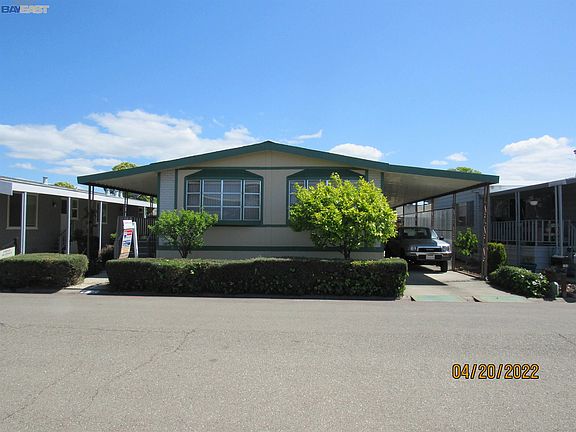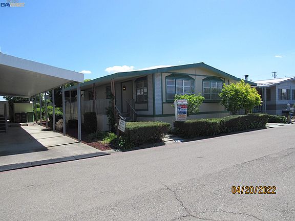 Spanish Ranch II, Senior Community. Well maintained double wide MH, 2 bedrooms and 2 bathrooms, centrally located. Enjoy the peace to live in a quiet neighborhood w/open floor flan, fireplace, separated living and dining room, lovely buit-in china cabinet, plenty kitchen cabinets with new dishwasher, breakfast bar and small office desk. Sliding door to large covered porch, indoor laundry, long carpot for 2+ cars, 2 sheds for storage and fruit plants in the back. No rear neighbors. Thank you for showing!