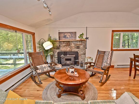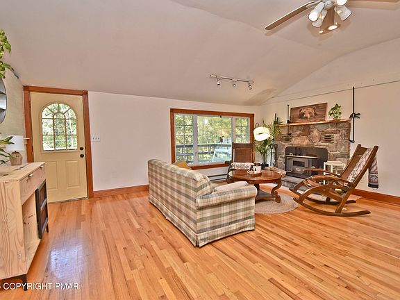 Nestled in the serene Fawn Lake Forest, this well-cared-for 3bd/2ba home blends charm & comfort, perfect for year-round living or weekend getaways! Inside, you'll find gleaming hardwood floors in the Living Room w/ a cozy stone wood-burning fireplace, ideal for chilly nights, & a Dining Area that opens to the tiled Kitchen w/ stainless steel appliances & sliders to the peaceful back porch, the perfect spot to relax. 2bds & full bath complete the main level. The walk-out LL offers endless possibilities, featuring a spacious rec room for game nights, movies, or quiet retreats, plus a 3rd bd & 2nd full bath. Step outside to enjoy the recently renovated front deck, perfect for morning coffee or evening gatherings. Located in amenity-rich Fawn Lake Forest w/ 2 private lakes, in/outdoor pools, a clubhouse, fitness center, tennis courts, pickleball, mini golf, & more, all just mins from Lake Wallenpaupack & year-round fun in Lackawaxen Township. Don't miss your chance to own a piece of Pocono paradise!