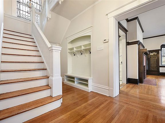 Welcome to the timeless charm of this 1920s gem near Regent Square and Frick Park. Steeped in history, this 3,800 square foot home with 3 finished levels offers generous space for both indoor and outdoor living. As you step inside you are greeted by the allure of high ceilings, hardwood floors and sunlight gleaming through many windows that even include a stunning stained-glass beauty in the main stairwell. This property is the perfect mix of original charm and modern updates like in the renovated kitchen. The entire interior was professional painted before hitting the market. Take one of two staircases to the second level with 3 of the 5 bedrooms. The master suite boasts a decorative fireplace, stunning bathroom with heated floors and a modern free standing soaking tub in the giant walk in ceramic tiled shower. Venture outdoors to discover a 2-car detached garage for storage and a private oasis that is ready for you to bring to life in the backyard and on the spacious level side yard.