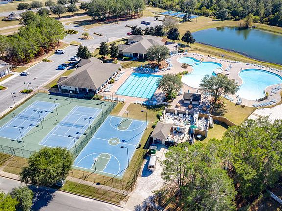 Ready for Occupancy! Tile flooring throughout w/new carpet in the 4 bdrs and flex room. A split floor plan provides ample privacy w/the master bdr overlooking the backyard and preserve. The flex room has glass French doors - ideal for an office or dining rm. This spacious, open plan has high double tray ceilings in the family room. The kitchen is well equipped w/stainless appliances, granite counters and tile backsplash. A LARGE 14X16 covered porch and a custom brick paver fire pit looks out over the wooded preserve. Privacy fencing is in place and encloses this large lot.Monthly HOA fees INCLUDE: Basic TV Cable, Access to all pools, 24hour gym, Clubhouse, Movie Theatre, Tennis and Basketball,/Pickleball Courts, Playground, Bay Club