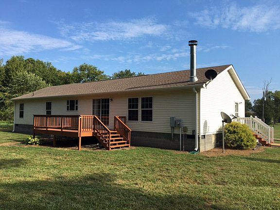 Redart area - Mathews- Like new 2005 modular rancher situated on almost four acres off main road, privacy and lots of room for outside activities. Home has over 1,900 square feet with three bedrooms with walk in closets and two full baths, wood burning fireplace in family room, large utility room, kitchen with sliding glass doors onto deck, center island, bar and stainless steel appliances less than two years old, new water softner and new detached 10' x 20' detached shed, roof only two years old. Great location!!!!!!