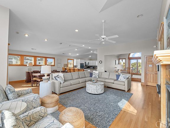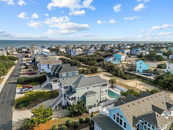 Indulge yourself in the prestige of this beautiful oceanside property, only steps to the beach and tastefully set in an upscale community within the highly sought-after Village of Duck. Enjoy the spacious floor plan, which provides large areas for both quiet escapes and social occasions. This exceptional residence has 7 bedrooms, 7 full bathrooms, a powder room, and it proudly sits on an elevated plot, ensuring safety from flood concerns. Every detail of this home radiates sophistication, from the hardwood flooring to the soaring ceilings. The reverse floor plan melds coastal aesthetics with functional design, showcasing meticulous craftsmanship. The top floor gourmet kitchen, with high-end stainless steel appliances, effortlessly flows into the spacious family room adorned with a cozy gas fireplace. Two decks, one on each side of the house, provide ample opportunities to soak up the sun. There is a large screened porch with lots of seating, perfect for morning coffee or an afternoon cocktail! A sitting area and powder room add to the top-level ambiance. The primary suite with expansive closet space, a lavishly appointed bathroom, and direct access to a private back deck, completes this elevated living experience. Ease and accessibility are enhanced by the presence of an elevator that connects to every floor. The mid-level serves as the main rest and recreation area with four en-suite bedrooms and a den for relaxation. Decks on this level offer additional outdoor relaxing and ideal lounging spots to enjoy the ocean breezes. On the ground floor is where the final two bedrooms are located, one of which is an en-suite, while the second has access to a full shared bathroom. A game room with plenty of seating, large TV, pool table, mini bar, full fridge, and icemaker adds a touch of hospitality and sophistication to this level. Outside, the residence features a private heated outdoor pool with tiled flooring, brand new hot tub, volleyball court, outdoor shower, and an array of decks—some bathed in sunlight, others shaded. This exceptional property offers a serene retreat in close proximity to upscale shopping, fine dining establishments, and the pristine beaches that define coastal living. The neighborhood offers a wonderful amenity package with tennis courts and a clubhouse featuring a large indoor heated pool pool, fitness center, and game room! Be sure to check out the tour in link, or cut/paste into your browser: https://my.matterport.com/show/m=LeyRjmWkRgr&play=1&brand=0&mls=1&