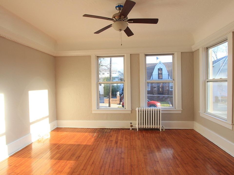 This 3 family home is offering a 3 bed 2 bath for rent. The home is located on a quiet block near buses. The home has a beautiful unique touch. The stucco makes this place stand out. The unit has a large living room and dinning room. One bedroom easily fits a king sized bed, while the other two can fit a queen. The crown moldings along the home have a great touch. The stained glass above the fire place create a quaint and comforting feel. The bathroom was tiled from floor to ceiling with rain shower head. The unit was recently repainted. The kitchen is massive and can be used as an eat-in kitchen. The kitchen has tons of counter space and equipped with a fridge, stove, and dishwasher. The unit offers a free laundry for tenants, a parking space, and a large storage unit. Heat and hot water included. heat hot water and laundry include