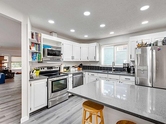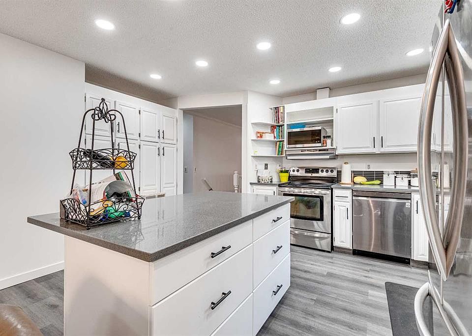 Fresh paintFull cabinet faceliftNew hardwareBrand new quartz countertopsUpdated lightingNew flooringUnique bungalow
