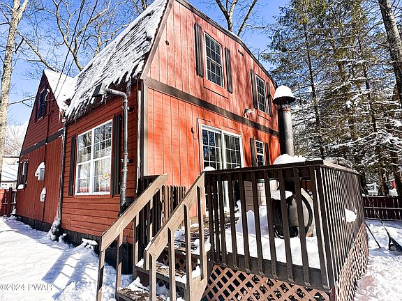 THE PERFECT COZY POCONOS HOME!! This 3-4 bedroom super charmer has everything you need & more! Ideally located near Promised Land State Park, no community/HOA, only minutes off the highway, & close to Lake Wallenpaupack to enjoy everything the area has to offer! You'll fall in love the moment you walk in... A covered front porch welcomes you into a spacious living room w/ open formal dining room & attached den/office/4th BR. Large 1st floor main full bath w/ nicely tiled walk-in shower. Very large eat-in kitchen w/ plentiful cabinet space & warm pellet stove fireplace. 3 Separate upstairs bedrooms, & another full 2nd floor bath w/ tile flooring, relaxing jetted soaking tub, & huge built in storage space. Outside features 2 storage sheds, spacious full length back deck, & COMPLETELY fenced in back yard ideal for privacy, pets, or children. This sweet retreat has been meticulously maintained, lovingly updated, and is ready for it's lucky new owner! Feel free to contact the listing agent with any questions you might have!