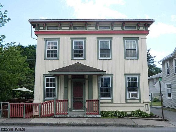 You can combine comfort, convenience, and plenty of yesteryear's charm in this Millheim gem! This historic home was built in the early 1800s and delights the ears with the rolling of Elk Creek. A spacious mudroom greets you upon entrance from the side and opens up into a modern kitchen. You can enjoy the exposed brick in the cozy dining room and a living/family room combination large enough to spread out in and relax! Upstairs, 4 bedrooms make for plenty of accommodations all with 10-12 inch floorboards adding to the historic aura of this home. The owner's bedroom uniquely drops down a few steps creating a special feeling of old-time allure. Outside you can entertain on the large deck perched above the boiling creek or on the nice flat lawn bordering the race! The second parcel being sold with this home is located directly behind the home and features a country foot bridge that crosses the race and a small clearing. Property is located in the 100-year flood zone and the Historic District of Millheim. Call today to set up a showing and stake your claim to this beautiful and historic home in the heart of Millheim!