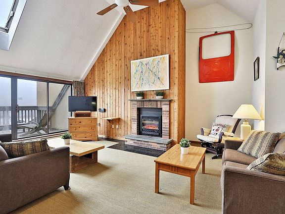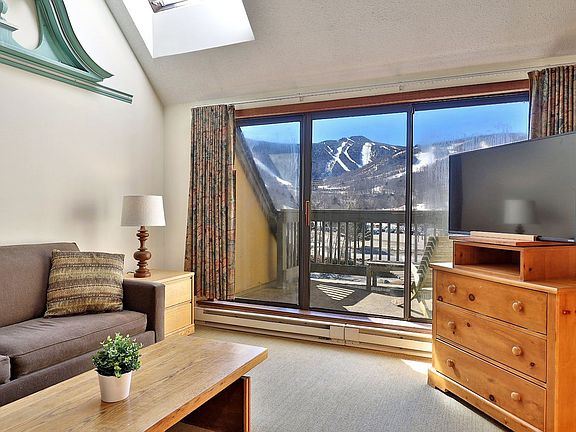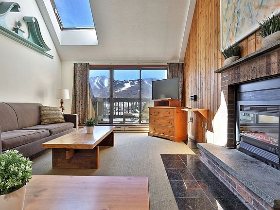 Welcome to your next vacation haven nestled in the scenic Mountain Green Resort in Killington, Vermont. This 2-bedroom, 2-bathroom loft condo offers the perfect blend of comfort and convenience for your getaway. Whether you're planning a family vacation, a trip with friends, or a romantic retreat, this space is designed to suit all your needs. The condo features a master bedroom with a queen-size bed and an en-suite bathroom, providing a private and serene space to unwind. The second bedroom is equipped with two twin beds, ideal for kids or additional guests. For larger groups, the living room includes a sleep sofa, ensuring everyone has a comfortable place to rest. The condo is up one flight of stairs inside the front door. Beyond the bedrooms, the condo boasts an array of amenities to enhance your stay. High-speed Wi-Fi and various streaming services are available to keep you connected and entertained, while the electric fireplace adds a cozy touch to your evenings in. The open kitchen and dining area are perfect for home-cooked meals, which you can enjoy on the balcony with picturesque mountain views. The indoor pool, hot tub, sauna, and steam room are open all year with specific hours. The fitness center is open 24/7. Key cards are required for access to these amenities. The shared outdoor heated saltwater pool, BBQ grills, and fire pit are open from Memorial Day to mid-September. Tesla destination chargers are available in the upper Snowshed parking lot, and non-Tesla EVs may use these with a J1772 adapter. Guaranteed early check-in or late check-out may be available for an additional charge. Parking is a breeze with a reserved indoor spot, along with additional outdoor parking and EV charging facilities. The convenience extends to the resort's offerings, including a free shuttle to Killington Resort from Thanksgiving to Easter, ensuring easy access to skiing and snowboarding adventures. After a day of outdoor fun, relax and rejuvenate in the spa, featuring a gym, indoor heated pool, hot tub, sauna, and steam room. During the summer, take advantage of the outdoor heated pool, firepit, or BBQ grills. The condo is only a 7-minute walk to Snowshed Lodge. Construction work will be underway from May through November 2024 and 2025, with scaffolding and potential noise. Rates have been adjusted to account for this work. The entire property is non-smoking and non-vaping, including balconies and decks. Smoking is only allowed outside and 75 feet away from the building. Quiet hours are from 10pm to 8am. Pets are not allowed, with a $450 fine for any unauthorized pets. No parties, large groups, or events are allowed. A community laundry room is available in each building, but the condo does not have its own washer and dryer. Winter maintenance may access the condo to shovel decks and patios. The town has well water high in mineral content, so bottled water is recommended if you do not like the taste. Winter weather is unpredictable, and weather-related refunds are not offered, so travel insurance is recommended. All-wheel drive and winter tires are also recommended.