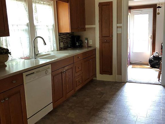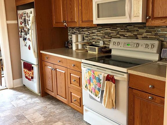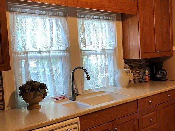 This well maintained, homey bungalow has a wide enclosed front porch and a deck- take your pick to enjoy the evenings. Inside, the living room, dining room and kitchen are a completely open living area featuring gorgeous oak woodwork and beautiful oak cabinets reaching all the way to the ceiling. The enclosed back porch has handy laundry and room to have a peaceful cup of coffee looking over the back yard. Two bedrooms and an updated bath with great storage completes the main level. A full basement offers even more storage and a shower and stool. Vinyl siding and replacement windows makes for a low maintenance exterior. Two car detached garage and partially fenced back yard.
