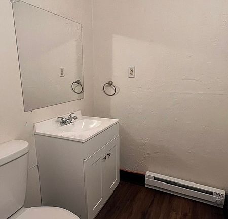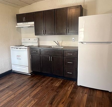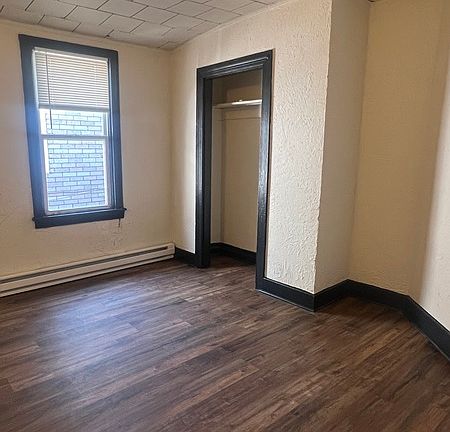 2nd floor Efficiency 1 bedroom, 1 full bath studio apartment with vinyl plank flooring throughout. Kitchen with stove and refrigerator, 1 off-street parking space in Lot B included. No pets and no smoking indoors. Rear entry only 1 year lease term Tenant pays electric No smoking No pets