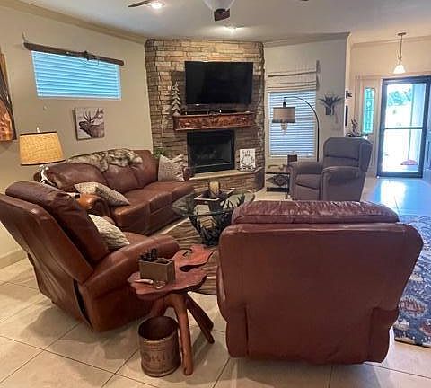 Lovely, one level home built on two lots that were re-platted into one - ideally located between both Alto & Outlaw golf courses. This low maintenance home features 3 bedrooms, 2 baths, a walk in shower, heated primary bathroom floors & Jacuzzi tub in the guest bath. The kitchen has granite & beautiful cabinetry. Living room has a gas fireplace. The home has an oversized 2 car garage with a separate entrance for your golf cart! Beautifully landscaped - nice covered back deck with a fenced courtyard area that has artificial turf & a hot tub. Central air & heat & a security system. Being sold mostly furnished excluding personal decor - SF is per county
